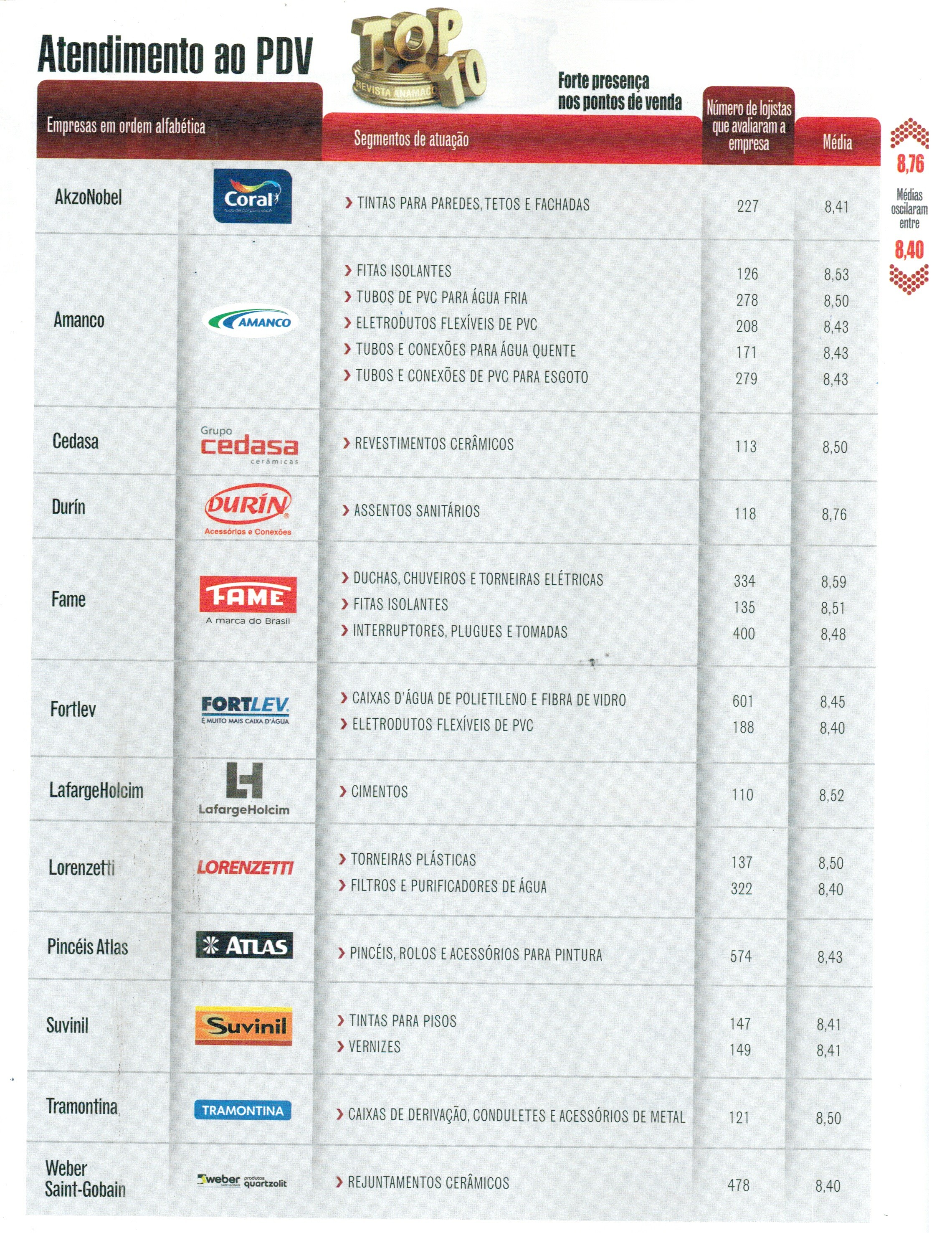 Única do segmento cerâmicos classicada entre as 10 melhores empresas do país!*