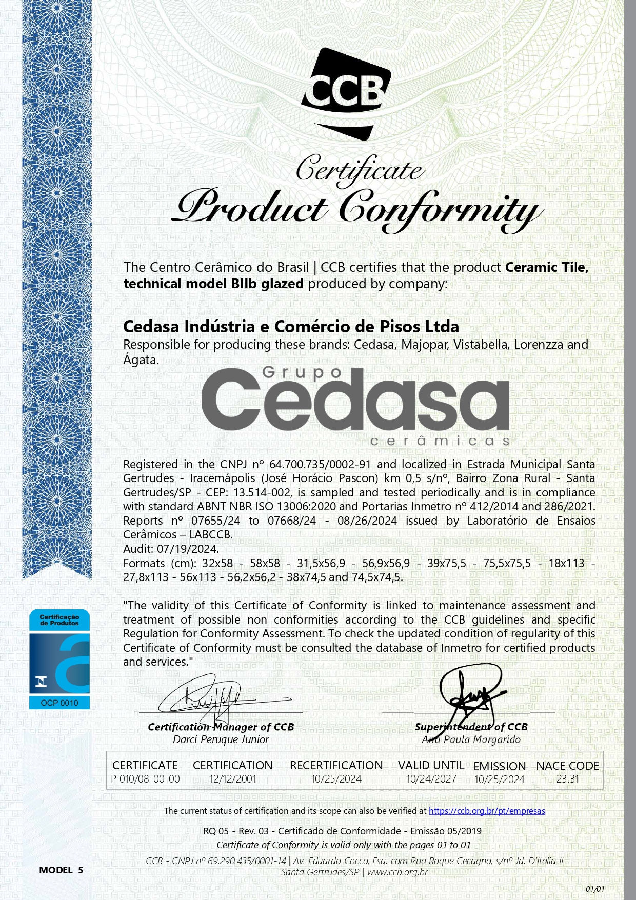 Certificado Conformidade de Produto – Inglês 10/24