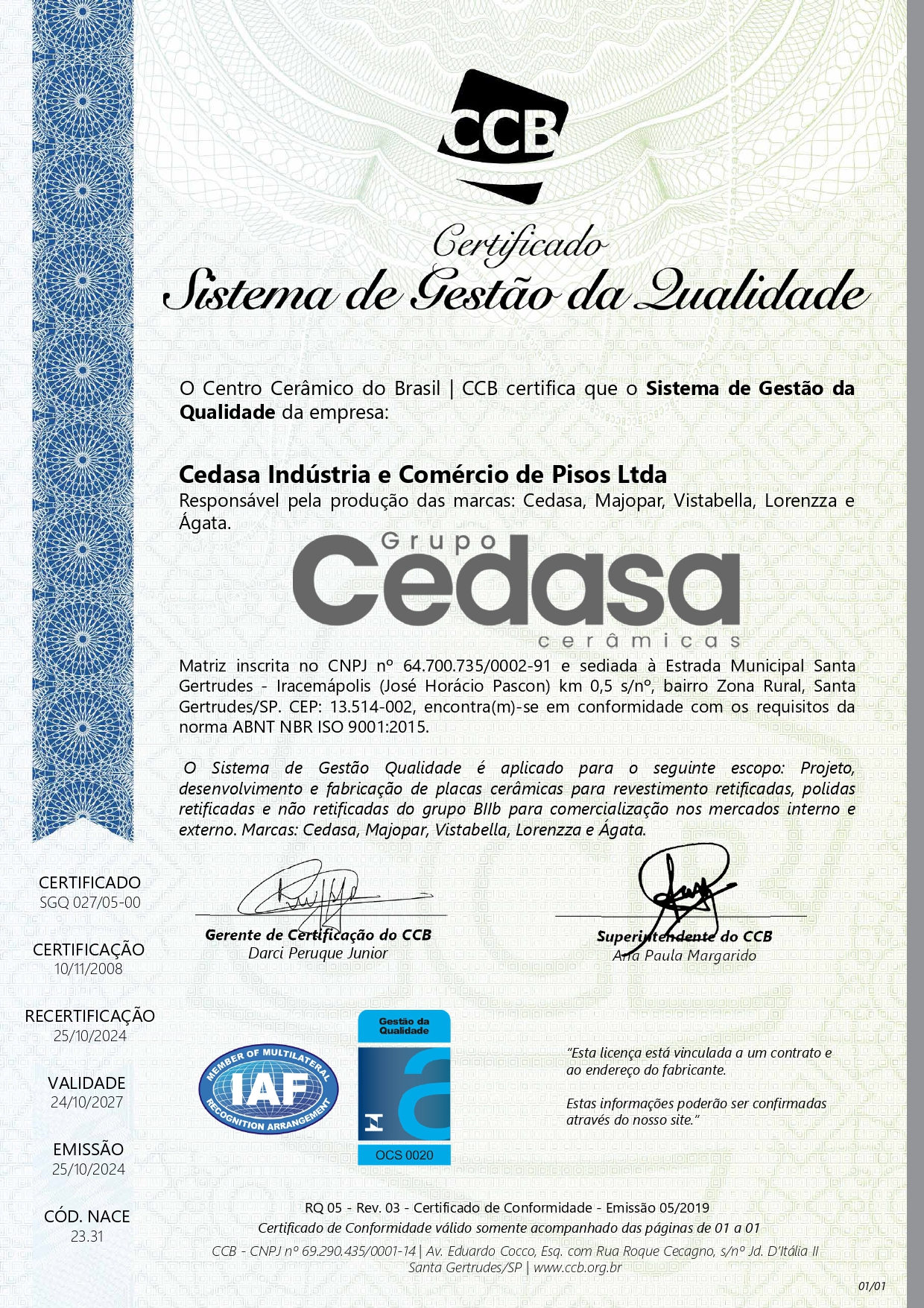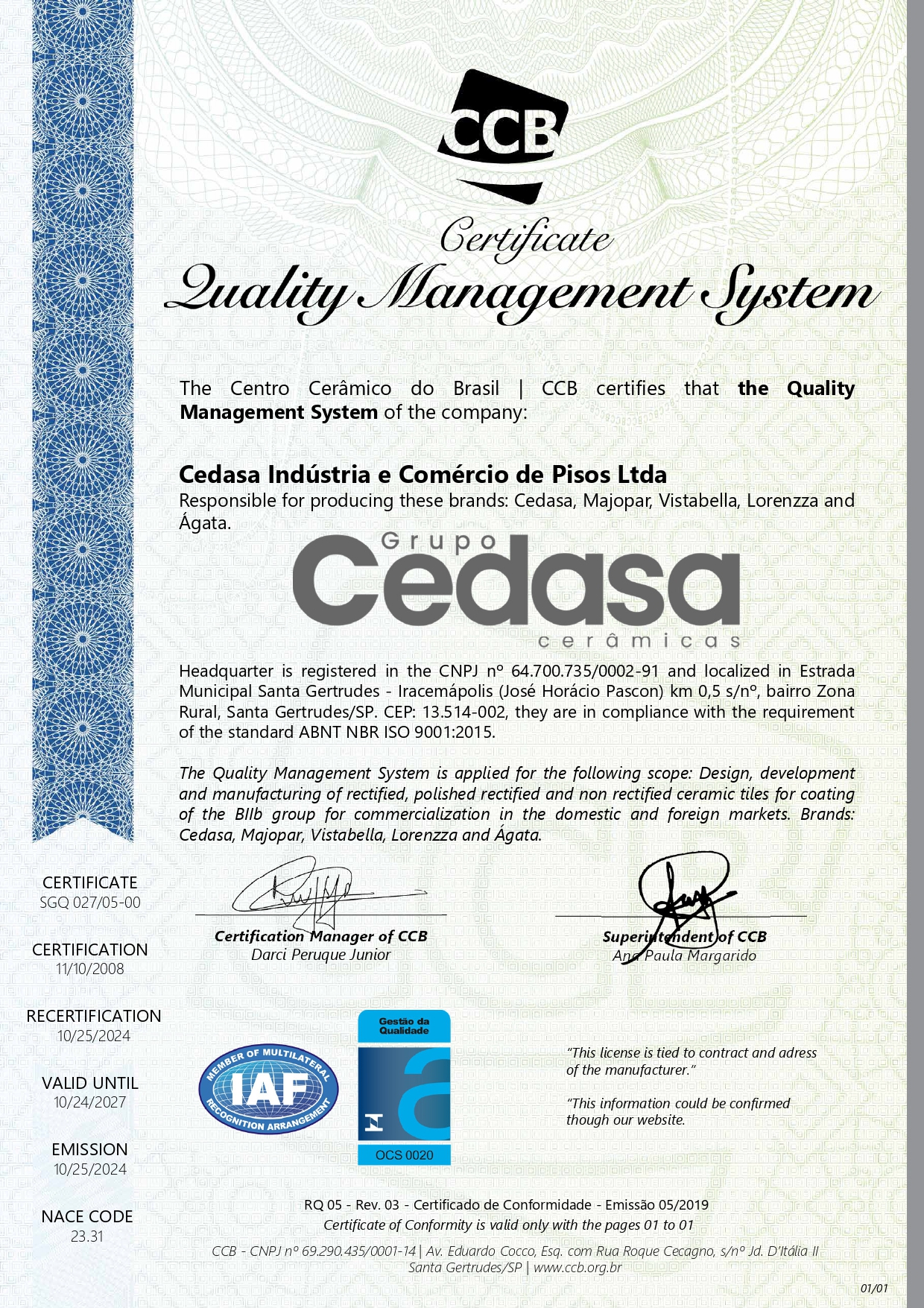 Certificado Sistema de Gestão da Qualidade – Português 10/24